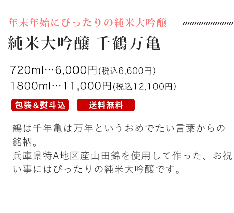 純米大吟醸 千鶴万亀 720ml【化粧箱入り】 6,000円(税込6,600円) -