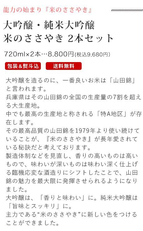 大吟醸・純米大吟醸 米のささやき 2本セット