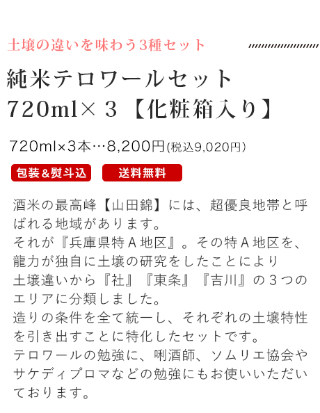 【送料無料!お歳暮ギフト 包装込】純米テロワールセット 720ml×3【化粧箱入り】